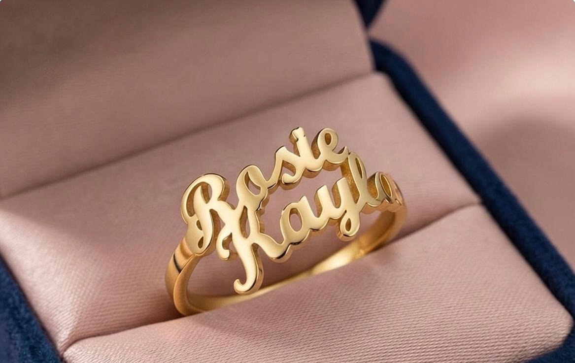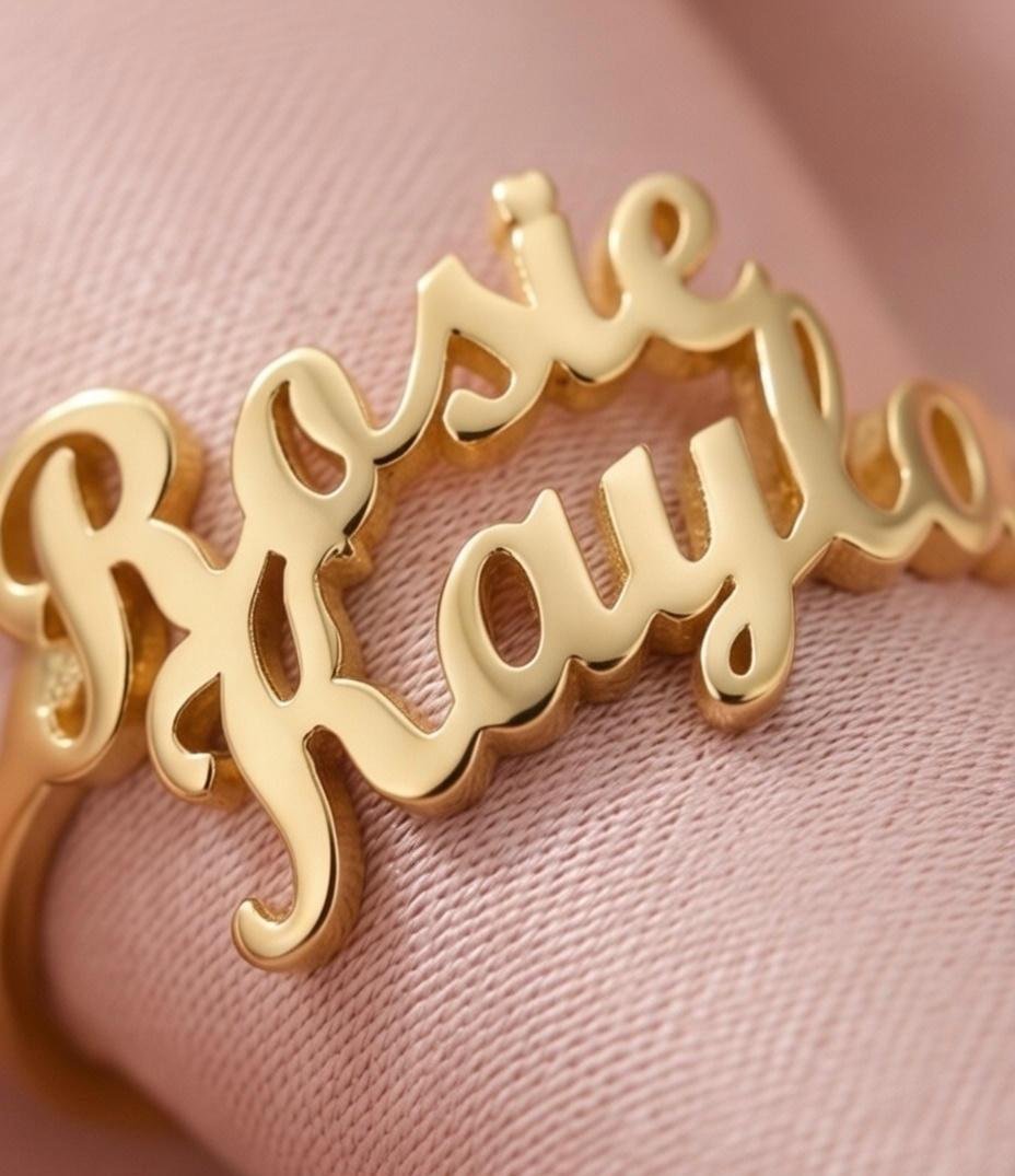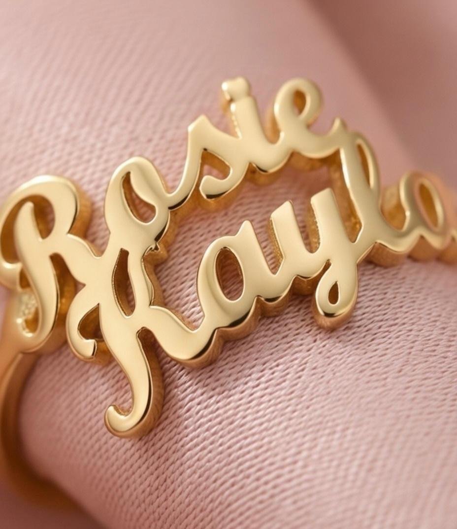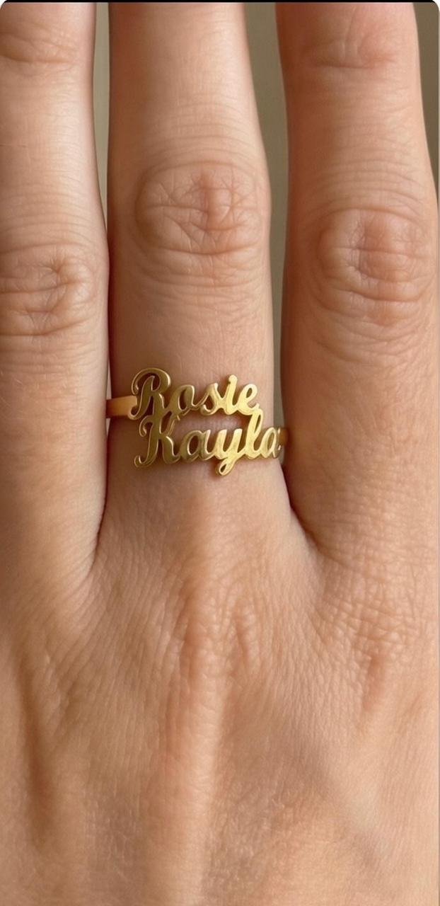 Expertly crafted with a clean, flowing script, this ring allows you to personalize it with names that tell your story. Finished in premium gold plated or silver plated metal, it offers a refined shine with an anti-tarnish, skin-safe coating, making it comfortable for daily wear by both men and women.